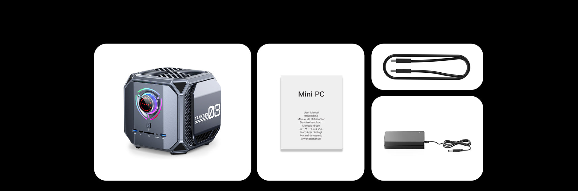 | Audioausgang | HDMI 2.0*3 USB 4.0 Typ-C*1 DP 2.0*3 3,5-mm-Audiobuchse*2 |