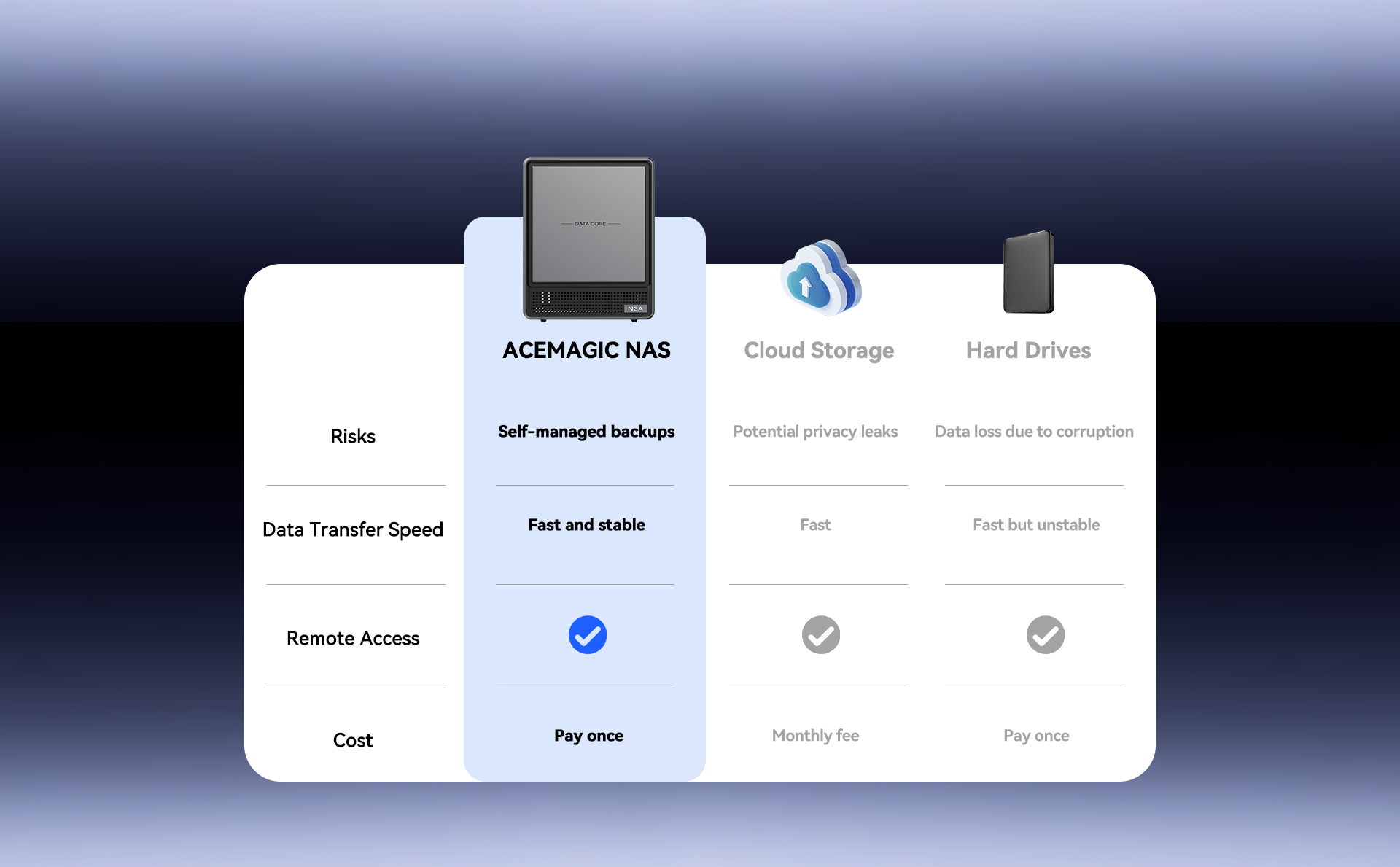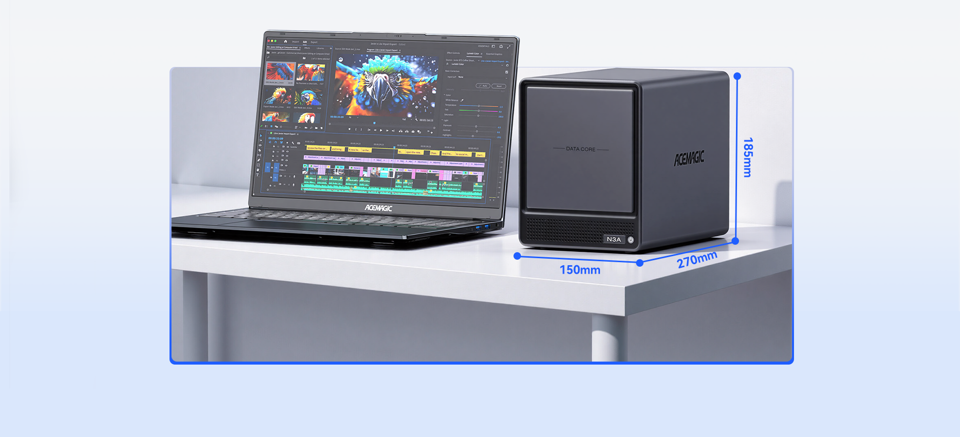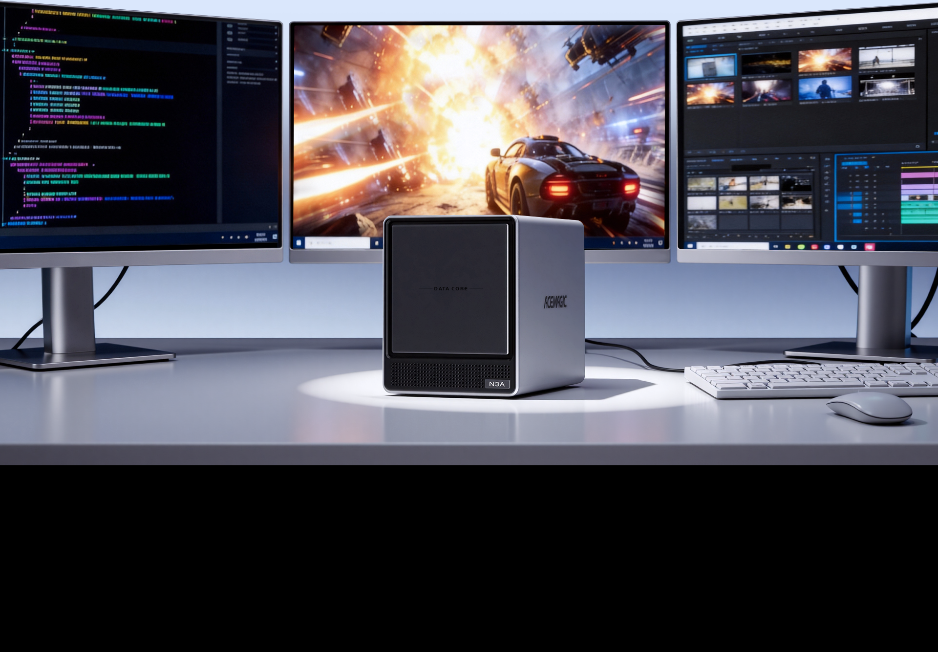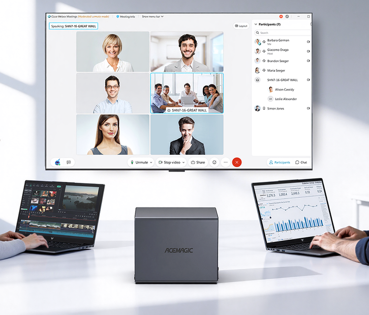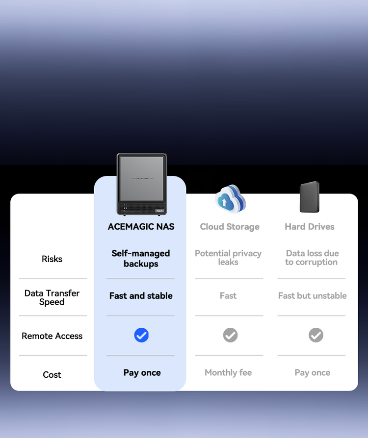 ACEMAGIC N3A NAS Mini PC is a powerful and flexible system powered by the AMD Ryzen™ Embedded R2544 processor, designed for reliable performance in storage and multitasking scenarios. It supports dual-channel DDR4 SO-DIMM memory (up to 64GB, 3200 MT/s) and offers versatile storage options with dual M.2 NVMe PCIe 3.0 ×4 slots and a SATA 3.0 interface, with total capacity expandable up to 8TB depending on configuration. It also features practical functions such as RTC scheduled power-on and automatic power-on when power is restored.