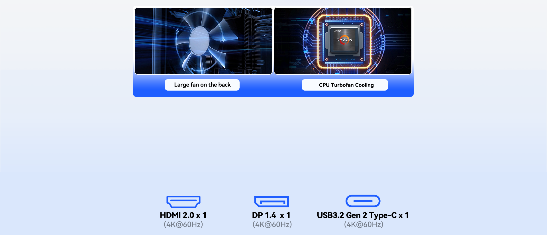 | Video Output | HDMI 2.0 *1 Max:4096*2160@60Hz USB3.2 Gen2 Type-C ×1 (10Gbps data transfer, DP 1.4 [4K@60Hz]) DP 1.4 *1 Max:4096*2160@60Hz |