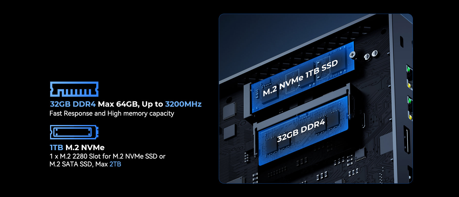 | RAM | DDR4 3200 MHz Dual Channel, DDR4 SO-DIMM Slots*2, up to 64GB |