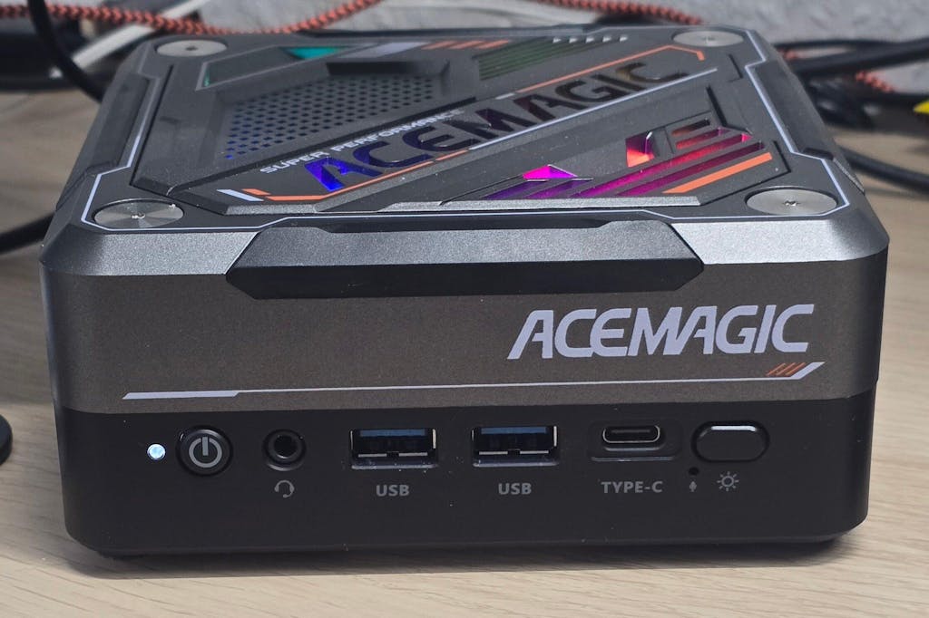 Der hier vorgestellte Mini-PC überzeugt durch seine bemerkenswerte Leistungsfähigkeit, die sich mit größeren Modellen problemlos messen kann. Es stellt sich die Frage, warum man für einen herkömmlichen großen PC mehr Geld ausgeben sollte, wenn man zu diesem Preis ein echtes kleines Wunder erhält. Besonders hervorzuheben ist dabei die nahezu geräuschlose Arbeitsweise: Selbst unter hoher Auslastung bleibt der PC absolut leise, zumindest nach meinem subjektiven Empfinden. Was die Geschwindigkeit betrifft, so kann der Mini-PC problemlos mit meinem Gaming-Laptop mithalten. Die verbauten Komponenten – Prozessor, Arbeitsspeicher und Grafikkarte – bieten eine beeindruckende Performance. Auch die Anschlüsse lassen keine Wünsche offen: Selbst bei einem erhöhten Bedarf an Verbindungen genügt es, einen Hub dazwischenzuschalten, ohne dass darunter die Leistungsfähigkeit leidet. Als zusätzliches Extra ist eine dezente RGB-Beleuchtung integriert, die ein nettes Gimmick darstellt, jedoch nicht übermäßig ins Auge fällt. Insgesamt kann ich diesen Mini-PC uneingeschränkt empfehlen – eine klare Kaufempfehlung für alle, die Wert auf Leistung, Kompaktheit und ein hervorragendes Preis-Leistungs-Verhältnis legen.