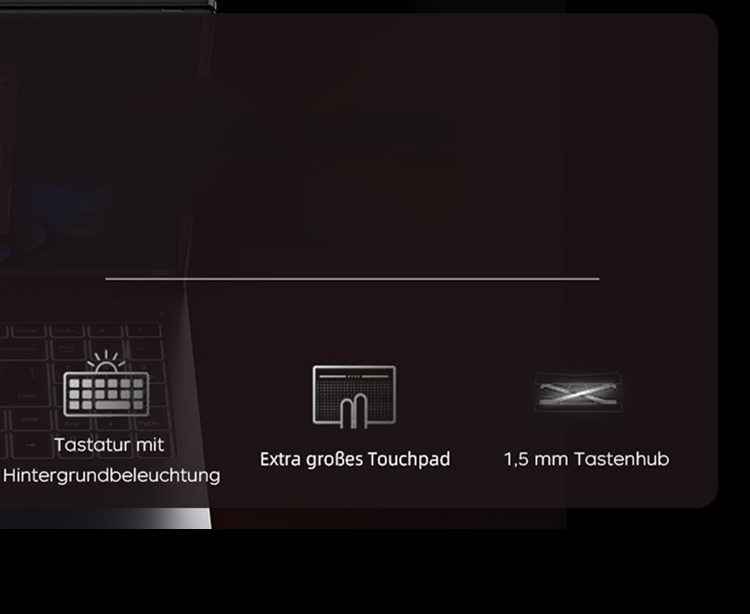Alle Laptops verfügen über ein QWERTY-Tastaturlayout und sind mit einer mehrsprachigen Tastaturmembran (Deutsch, Französisch, Italienisch und Spanisch) ausgestattet.