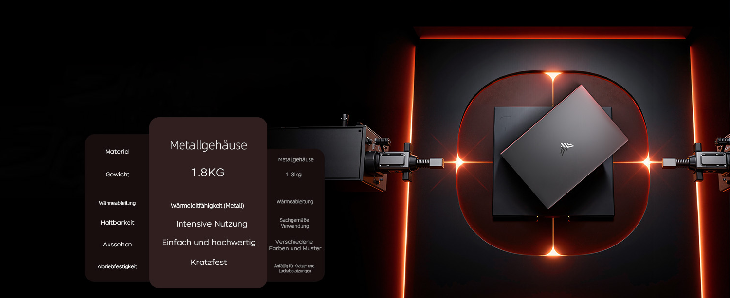 USB 3.2*2 Gen 1, USB 2.0*1 3,5-mm-Standardkopfhörerbuchse*1 Typ-C-Stromanschluss*1 HDMI 2.0*1 USB 3,2 Typ-C*2, Gen 2 (PD-Laden/DP1.4, 8K@60Hz/20Gbps Datenübertragung) TF-Kartensteckplatz*1 |