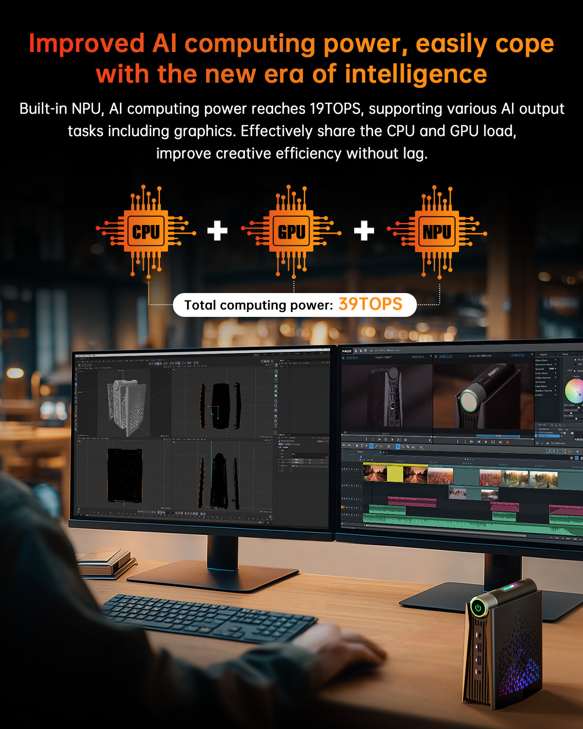Die neue Generation des Performance-Kerns kann Aufgaben mit hoher Belastung problemlos bewältigen. E-Sport-Wettbewerbe, professionelles Design und Inhaltserstellung können alle mit einer Maschine durchgeführt werden, die eine stabile Ausgabe liefert. Kleine Größe, große Leistung, volle Beschleunigung für Effizienz und Leidenschaft.