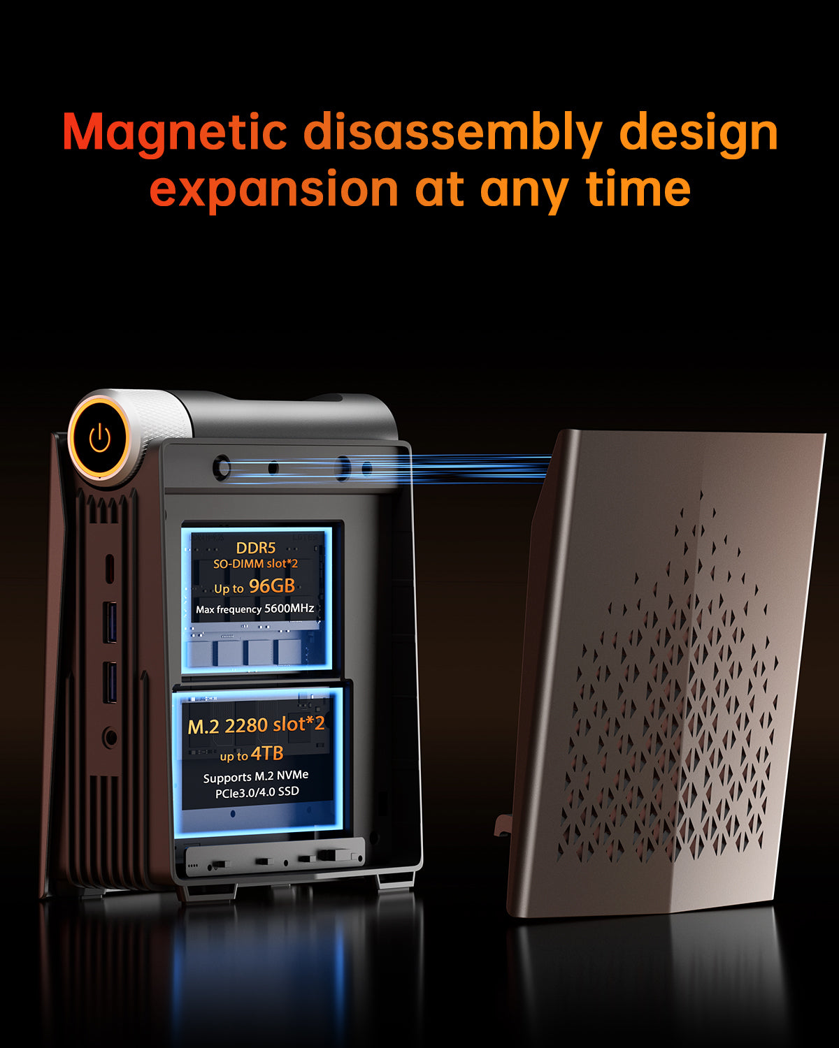 Der S3A (Altes Modell: AMR5) Mini-Gaming-PC bietet drei verschiedene Beleuchtungsmodi (Atmung/Zyklus/Regenbogen) zur Auswahl, Sie können Ihren Lieblingseffekt je nach Stimmung auswählen. Dieser Mini-PC verfügt über ein Kühlmodul aus einer Mischung hochmoderner Kupferlegierungen für eine effiziente Wärmeableitung. Dies wird durch einen superschnellen Kühllüfter unterstützt. Zusammen bleiben Sie auch während der intensivsten Gaming-Sessions cool!